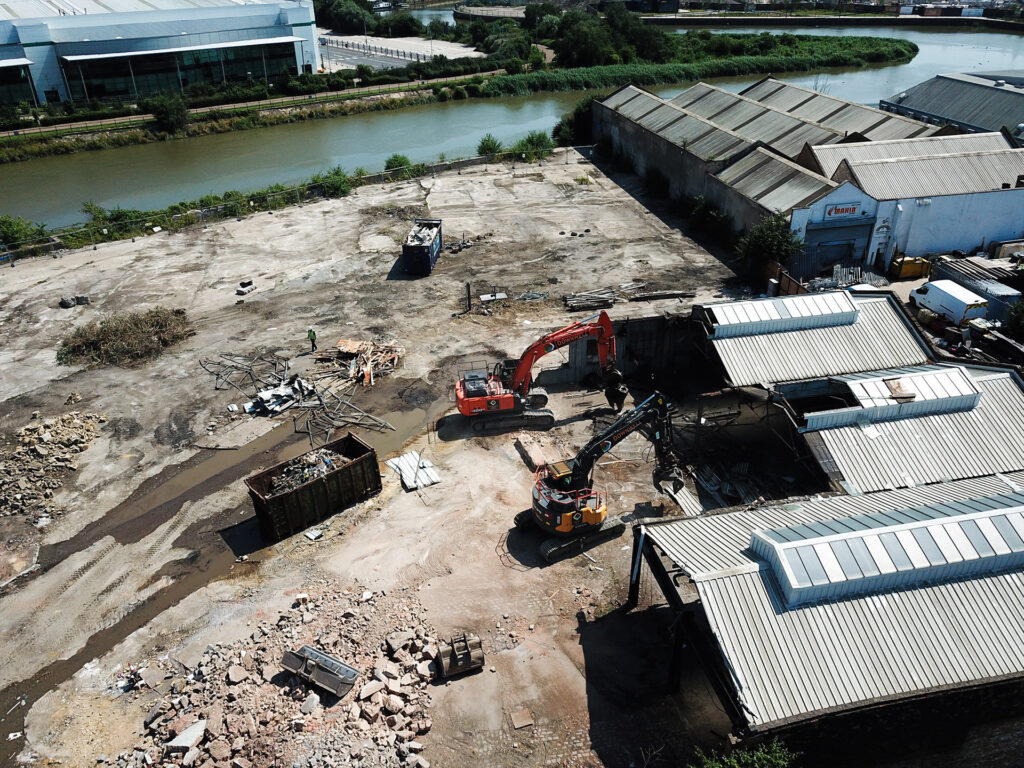 Downwell was appointed by Country Garden to deliver a comprehensive package of enabling works at Ailsa Wharf, a former industrial site in Bow, East London. The initial phase involved the safe removal of Japanese Knotweed, alongside the demolition of all above-ground structures. Following the successful completion of these works, our remit was extended to include a full suite of enabling services critical to the site’s regeneration.