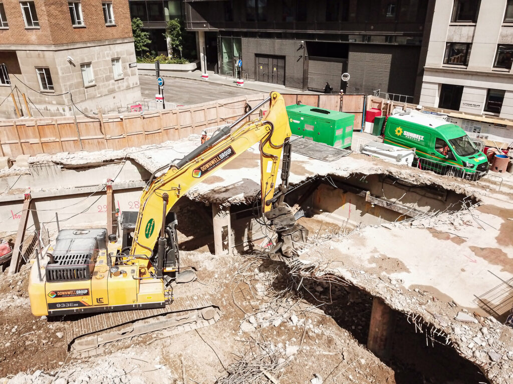 Working within an extremely confined city centre site required meticulous planning and constant communication with multiple contractors. The removal of the existing deep raft slab adjacent to an active tower crane base demanded precision and continuous monitoring to prevent undermining. Downwell’s team successfully managed these risks through close coordination, enhanced supervision and rigorous safety controls.